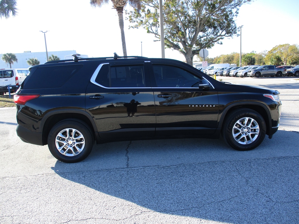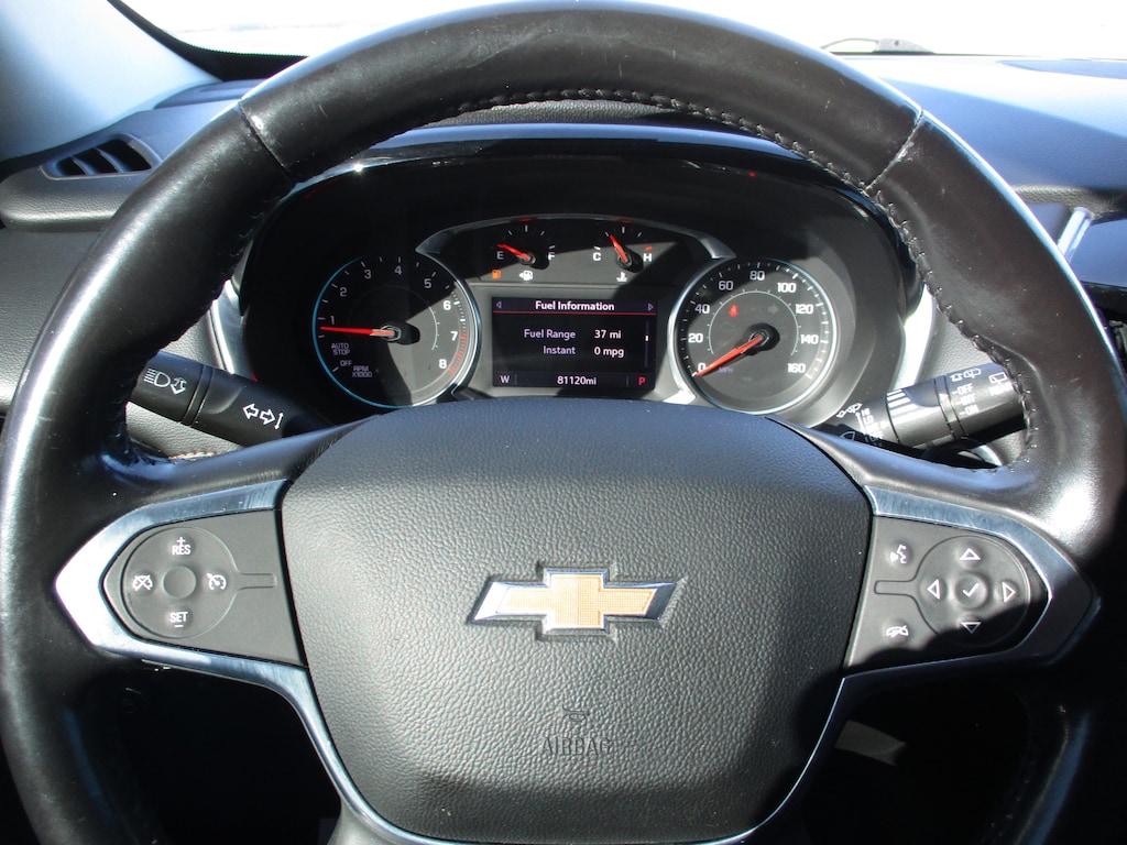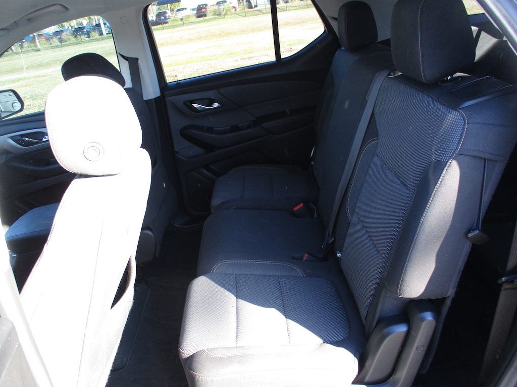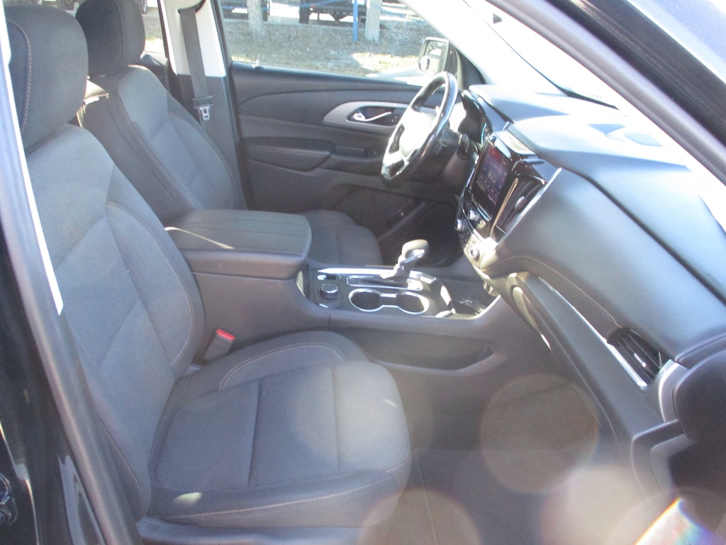 This 2021 Chevrolet Traverse LT in Mosaic Black Metallic features: AWD, 3.49 Axle Ratio, 3rd row seats: split-bench, 4-Wheel Disc Brakes, 6 Speakers, 7-Passenger Seating (2-2-3 Seating Configuration), 8-Passenger Seating (2-3-3 Seating Configuration), ABS brakes, Air Conditioning, Alloy wheels, AM/FM radio: SiriusXM, Apple CarPlay/Android Auto, Automatic temperature control, Brake assist, Bumpers: body-color, Compass, Delay-off headlights, Driver door bin, Driver vanity mirror, Dual front impact airbags, Dual front side impact airbags, Electronic Stability Control, Emergency communication system: OnStar and Chevrolet connected services capable, Four wheel independent suspension, Front anti-roll bar, Front Bucket Seats, Front Center Armrest, Front dual zone A/C, Front fog lights, Front License Plate Bracket Mounting Package, Front reading lights, Fully automatic headlights, Garage door transmitter, Heated door mirrors, Heated front seats, High-Intensity Discharge Headlights, Illuminated entry, Leather steering wheel, Low tire pressure warning, Occupant sensing airbag, Outside temperature display, Overhead airbag, Overhead console, Panic alarm, Passenger door bin, Passenger vanity mirror, Power door mirrors, Power driver seat, Power Liftgate, Power steering, Power windows, Preferred Equipment Group 1LT, Premium Cloth Seat Trim, Radio data system, Radio: Chevrolet Infotainment 3 Plus System, Rear air conditioning, Rear anti-roll bar, Rear reading lights, Rear window defroster, Rear window wiper, Remote keyless entry, Roof rack: rails only, Security system, SiriusXM w/360L, Speed control, Speed-sensing steering, Spoiler, Steering wheel mounted audio controls, Tachometer, Telescoping steering wheel, Tilt steering wheel, Traction control, Trip computer, Turn signal indicator mirrors, Variably intermittent wipers, Voltmeter, Wheels: 18" Bright Silver Painted Aluminum.