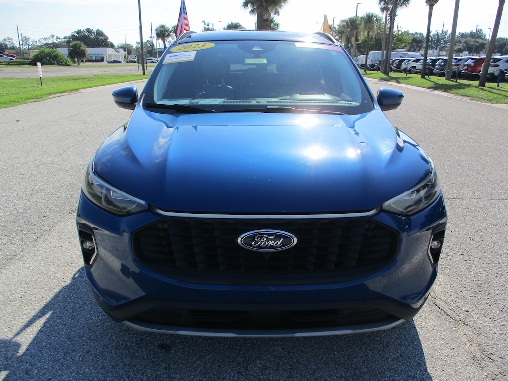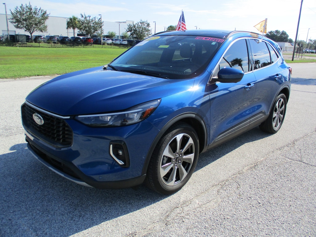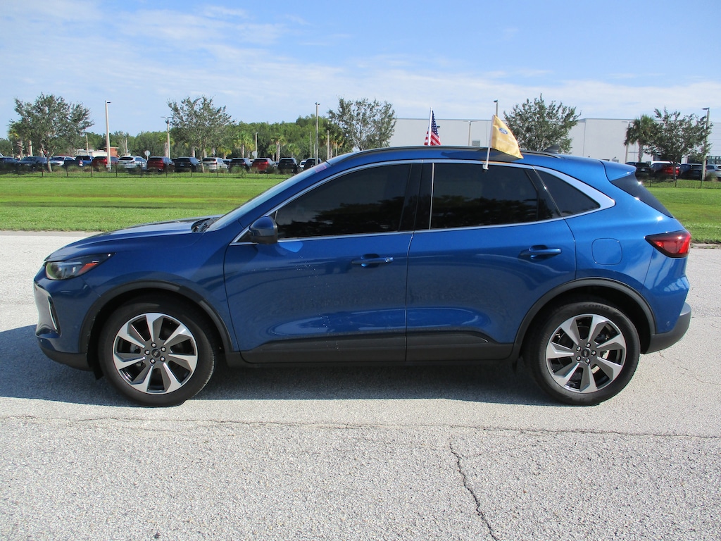 CARFAX One-Owner. This 2023 Ford Escape Hybrid Platinum in Atlas Blue Metallic features: 2.5L iVCT, ** ONE OWNER, ** NO ACCIDENT REPORTED, 2.91 Axle Ratio, 4-Wheel Disc Brakes, 6 Speakers, ABS brakes, Active Park Assist 2.0, Air Conditioning, Alloy wheels, AM/FM radio: SiriusXM, AM/FM Stereo, Auto High-beam Headlights, Auto-dimming Rear-View mirror, Automatic temperature control, Black Roof-Rack Side Rails, Brake assist, Bumpers: body-color, Cargo Mat, Compass, Delay-off headlights, Driver door bin, Driver vanity mirror, Dual front impact airbags, Dual front side impact airbags, Easy Access Cargo Shade, Electronic Fuel Door Release, Electronic Stability Control, Emergency communication system: SYNC 4 911 Assist, Equipment Group 600A, Exterior Parking Camera Rear, FordPass Connect, Four wheel independent suspension, Front & Rear Floor Liners w/Carpet Mats, Front anti-roll bar, Front Bucket Seats, Front Center Armrest, Front dual zone A/C, Front fog lights, Front reading lights, Fully automatic headlights, Garage door transmitter, HD Radio, Head-Up Display, Heated ActiveX Trimmed Front Sport Contour Bucket Seats, Heated door mirrors, Heated front seats, Heated Leather-Trimmed Front Sport Contour Seats, Heated steering wheel, Illuminated entry, Knee airbag, Low tire pressure warning, Memory seat, Navigation system: Connected Navigation, Neutral Towing Capability, Occupant sensing airbag, Outside temperature display, Overhead airbag, Overhead console, Panic alarm, Panoramic Vista Roof, Passenger door bin, Passenger vanity mirror, Pedestrian Alert Sounder, Power door mirrors, Power driver seat, Power Liftgate, Power passenger seat, Power steering, Power windows, Premium Technology Package, Radio data system, Radio: B&O Sound System by Bang & Olufsen, Rain sensing wipers, Rear anti-roll bar, Rear reading lights, Rear seat center armrest, Rear window defroster, Rear window wiper, Remote keyless entry, Road Side Assistance Kit, Security system, Speed control, Speed-sensing steering, Speed-Sensitive Wipers, Split folding rear seat, Spoiler, Steering wheel mounted audio controls, SYNC 4 w/Enhanced Voice Recognition, Telescoping steering wheel, Tilt steering wheel, Traction control, Trip computer, Variably intermittent wipers, Wheels: 19" Machined-Face Aluminum.