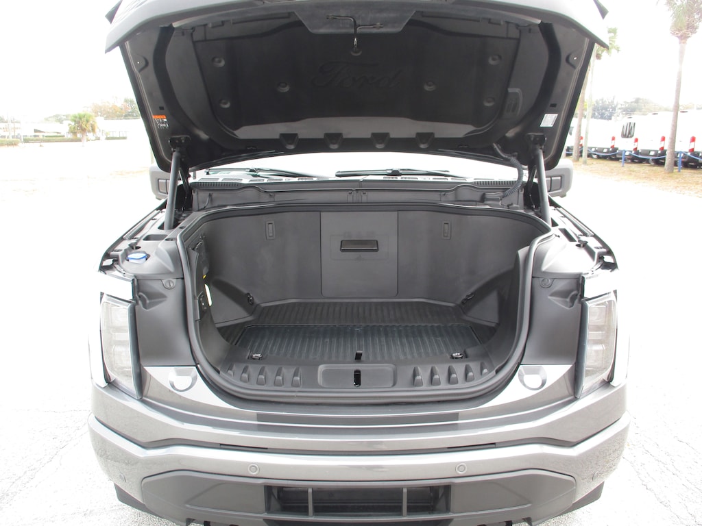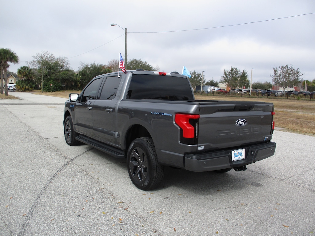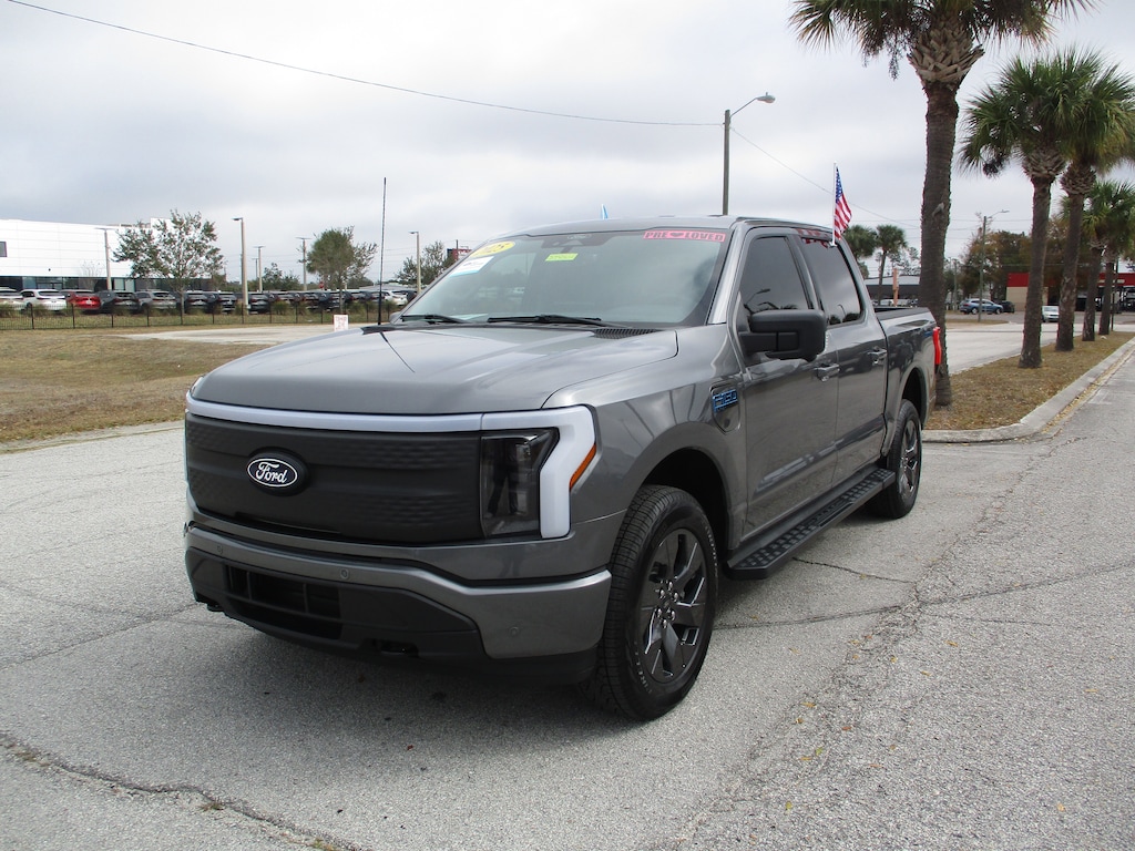 CARFAX One-Owner. This 2025 Ford F-150 Lightning Flash in Gray Metallic features: 4-Wheel Disc Brakes, 8 Speakers, ABS brakes, ActiveX Trimmed Heated Front Seats, Adjustable pedals, Air Conditioning, Alloy wheels, Auto High-beam Headlights, Auto-dimming Rear-View mirror, Automatic temperature control, Brake assist, Bumpers: body-color, Compass, Delay-off headlights, Driver door bin, Driver vanity mirror, Dual front impact airbags, Dual front side impact airbags, Electronic Stability Control, Emergency communication system: SYNC 4 911 Assist, Equipment Group 312A Standard, Four wheel independent suspension, Front anti-roll bar, Front Bucket Seats, Front Center Armrest, Front dual zone A/C, Front reading lights, Fully automatic headlights, Heated door mirrors, Heated front seats, Heated steering wheel, Illuminated entry, Internet access capable: FordPass Connect 4G, Knee airbag, Low tire pressure warning, Mobile Power Cord (120/240V), Navigation system: Connected Navigation, Occupant sensing airbag, Outside temperature display, Overhead airbag, Overhead console, Panic alarm, Passenger door bin, Passenger vanity mirror, Power door mirrors, Power driver seat, Power passenger seat, Power steering, Power windows, Radio data system, Radio: B&O Sound System by Bang & Olufsen, Rear anti-roll bar, Rear reading lights, Rear step bumper, Rear window defroster, Remote keyless entry, Security system, Speed control, Speed-sensing steering, Split folding rear seat, Steering wheel mounted audio controls, SYNC 4A w/Enhanced Voice Recognition, Tailgate Step w/Tailgate Work Surface, Telescoping steering wheel, Tilt steering wheel, Traction control, Tray Style Floor Liner, Trip computer, Turn signal indicator mirrors, Variably intermittent wipers, Wheels: 20" Alloy Dark Carbonized Gray.