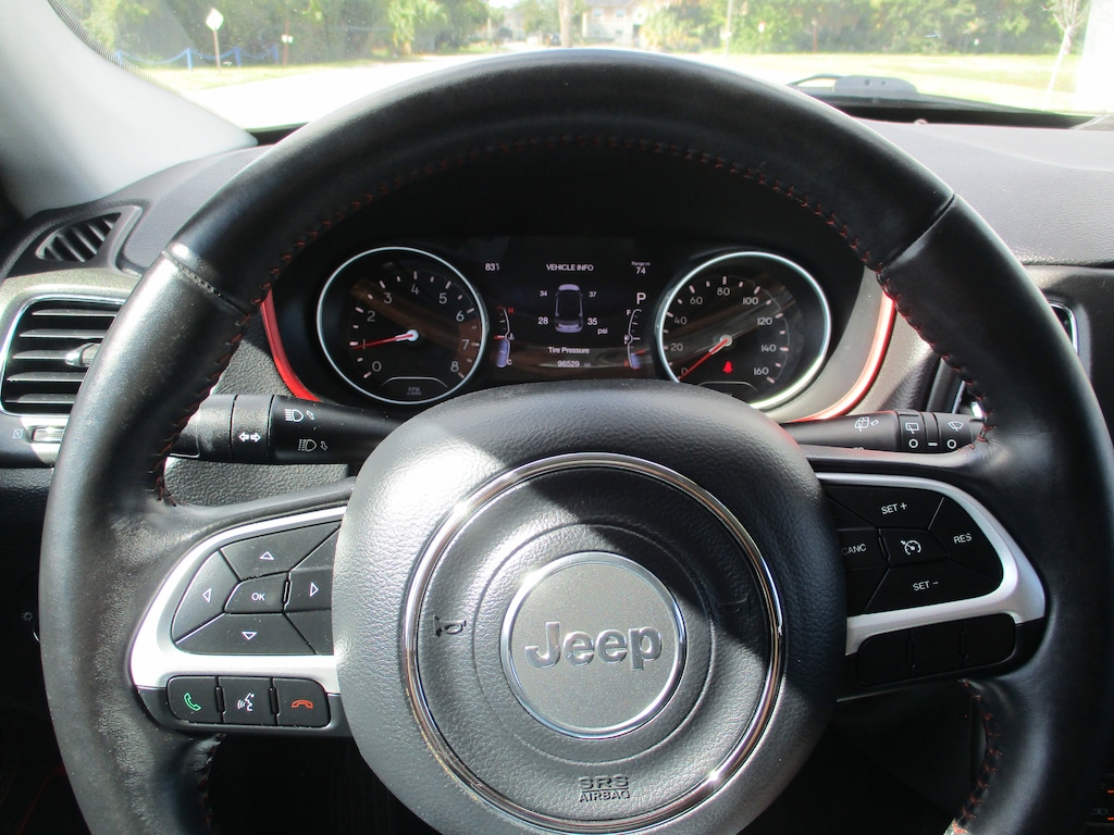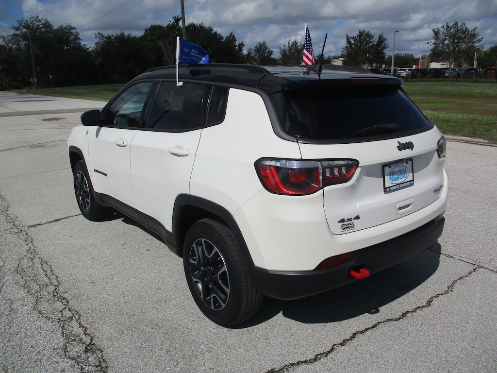 This 2019 Jeep Compass Trailhawk in White Clearcoat features: 4WD, 4-Wheel Disc Brakes, 4.334 Axle Ratio, 6 Speakers, ABS brakes, Air Conditioning, Alloy wheels, AM/FM radio: SiriusXM, Anti-whiplash front head restraints, Apple CarPlay/Android Auto, Automatic temperature control, Brake assist, Bumpers: body-color, Compass, Delay-off headlights, Driver door bin, Driver vanity mirror, Dual front impact airbags, Dual front side impact airbags, Electronic Stability Control, Four wheel independent suspension, Front anti-roll bar, Front Bucket Seats, Front Center Armrest w/Storage, Front dual zone A/C, Front fog lights, Front reading lights, Fully automatic headlights, Google Android Auto, GPS Antenna Input, Heated door mirrors, Illuminated entry, Knee airbag, Leather Shift Knob, Low tire pressure warning, Manufacturer's Statement of Origin, Occupant sensing airbag, Outside temperature display, Overhead airbag, Overhead console, Panic alarm, ParkView Rear Back-Up Camera, Passenger door bin, Passenger vanity mirror, Power door mirrors, Power steering, Power windows, Premium Cloth/Leather Trim Bucket Seats, Quick Order Package 2GE, Radio: Uconnect 4 w/8.4" Display, Rear anti-roll bar, Rear seat center armrest, Rear window defroster, Rear window wiper, Remote keyless entry, Roof rack: rails only, Speed control, Split folding rear seat, Spoiler, Steering wheel mounted audio controls, Tachometer, Telescoping steering wheel, Tilt steering wheel, Traction control, Trip computer, Turn signal indicator mirrors, USB Host Flip, Variably intermittent wipers, Wheels: 17" x 6.5" Painted/Bright Aluminum.
