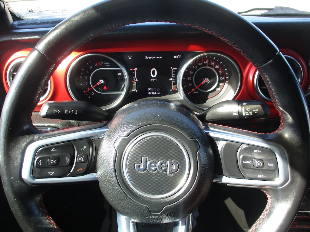 CARFAX One-Owner. This 2020 Jeep Wrangler Unlimited Rubicon in Black Clearcoat features: 4-Wheel Disc Brakes, 4.10 Rear Axle Ratio, 8 Speakers, ABS brakes, Air Conditioning, Alloy wheels, AM/FM radio: SiriusXM, Apple CarPlay/Android Auto, Automatic temperature control, Aux Battery, BF Goodrich Brand Tires, Brake assist, Compass, Delay-off headlights, Driver door bin, Driver vanity mirror, Dual front impact airbags, Dual front side impact airbags, Electronic Stability Control, Front anti-roll bar, Front Bucket Seats, Front Center Armrest w/Storage, Front dual zone A/C, Front fog lights, Front reading lights, Fully automatic headlights, Garage door transmitter, Heated door mirrors, Illuminated entry, Integrated roll-over protection, Leather steering wheel, Low tire pressure warning, MOPAR All-Weather Floor Mats (DISC), Non-Lock Fuel Cap w/o Discriminator, Occupant sensing airbag, Outside temperature display, Panic alarm, ParkView Rear Back-Up Camera, Passenger door bin, Passenger vanity mirror, Performance Suspension, Power door mirrors, Power steering, Power windows, Premium Cloth Low-Back Bucket Seats, Quick Order Package 22R, Quick Order Package 23R, Radio data system, Radio: Uconnect 4 w/7" Display, Rear anti-roll bar, Rear reading lights, Remote keyless entry, Security system, Speed control, Split folding rear seat, Steering wheel mounted audio controls, Tachometer, Telescoping steering wheel, Tilt steering wheel, Traction control, Trip computer, Variably intermittent wipers, Voltmeter, Wheels: 17" x 7.5" Black w/Machined Lip, Wheels: 17" x 7.5" Machined w/Black Pockets.