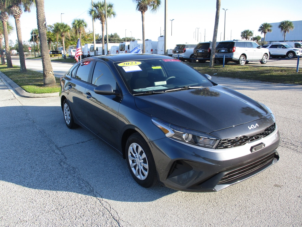 CARFAX One-Owner. This 2023 Kia Forte LX in Gravity Gray features: 15" x 6.0J Steel Wheels, 4 Speakers, 4-Wheel Disc Brakes, ABS brakes, Air Conditioning, AM/FM radio, Apple CarPlay & Android Auto, Auto High-beam Headlights, Brake assist, Bumpers: body-color, Cloth Seat Trim, Delay-off headlights, Driver door bin, Driver vanity mirror, Dual front impact airbags, Dual front side impact airbags, Electronic Stability Control, Exterior Parking Camera Rear, Front anti-roll bar, Front Bucket Seats, Front Center Armrest, Front reading lights, Front wheel independent suspension, Fully automatic headlights, Illuminated entry, Low tire pressure warning, Occupant sensing airbag, Outside temperature display, Overhead airbag, Overhead console, Panic alarm, Passenger door bin, Passenger vanity mirror, Power door mirrors, Power steering, Power windows, Radio data system, Radio: 8" Display Audio, Rear window defroster, Remote keyless entry, Security system, Speed control, Steering wheel mounted audio controls, Tachometer, Telescoping steering wheel, Tilt steering wheel, Traction control, Trip computer, Variably intermittent wipers.