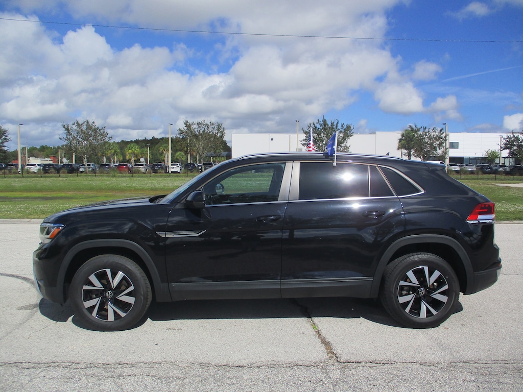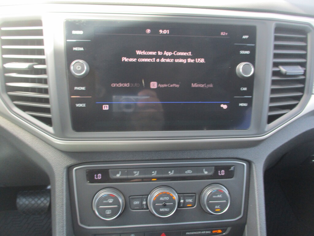 This 2020 Volkswagen Atlas Cross Sport 2.0T SE in Deep Black features: 3.60 Axle Ratio, 4-Wheel Disc Brakes, 6 Speakers, ABS brakes, Air Conditioning, Alloy wheels, AM/FM radio: SiriusXM, Auto-dimming Rear-View mirror, Automatic temperature control, Brake assist, Bumpers: body-color, Compass, Delay-off headlights, Driver door bin, Driver vanity mirror, Dual front impact airbags, Dual front side impact airbags, Electronic Stability Control, Emergency communication system: VW Car-Net services (capabilities require enrollment or subscription), Exterior Parking Camera Rear, Four wheel independent suspension, Front anti-roll bar, Front Bucket Seats, Front Center Armrest, Front dual zone A/C, Front fog lights, Front reading lights, Fully automatic headlights, Heated Comfort Front Bucket Seats, Heated door mirrors, Heated front seats, Heavy Duty Trunk Liner w/VW CarGo Blocks, Illuminated entry, Low tire pressure warning, Occupant sensing airbag, Outside temperature display, Overhead airbag, Overhead console, Panic alarm, Passenger door bin, Passenger vanity mirror, Power door mirrors, Power driver seat, Power Liftgate, Power steering, Power windows, Radio data system, Radio: Composition Media w/8.0" Touchscreen, Rain sensing wipers, Rear anti-roll bar, Rear reading lights, Rear seat center armrest, Rear window defroster, Rear window wiper, Remote CD player, Remote keyless entry, Roadside Assistance Kit, Roof rack: rails only, Rubber Mats Kit, Security system, Speed control, Speed-sensing steering, Split folding rear seat, Spoiler, Standard Suspension, Steering wheel mounted audio controls, Tachometer, Telescoping steering wheel, Tilt steering wheel, Traction control, Trip computer, Turn signal indicator mirrors, V-Tex Leatherette Seating Surfaces, Variably intermittent wipers, VW App-Connect (w/Apple CarPlay, Android Auto & MirrorLink), Wheels: 18" 5-Spoke 2-Tone Machined Alloy.