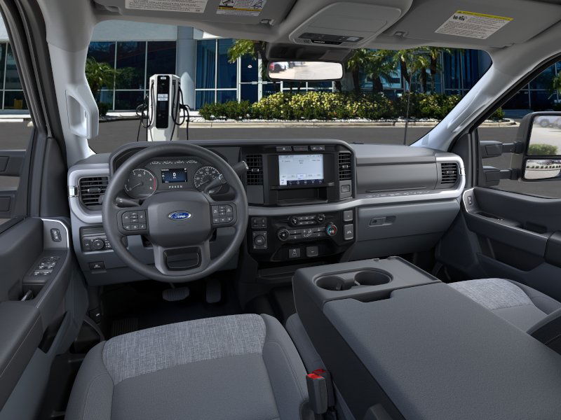 This Ford Super Duty F-250 SRW delivers a Intercooled Turbo Diesel V-8 6.7 L/406 engine powering this Automatic transmission. ENGINE: 6.7L 4V OHV POWER STROKE V8 TURBO DIESEL B20 -inc: manual push-button engine-exhaust braking, Operator Commanded Regeneration (OCR) and intelligent oil-life monitor, 190 Amp Alternator (Diesel), 34 Gallon Fuel Tank, 3.31 Axle Ratio, Dual 68 AH/65 AGM Batteries, Wheels: 17" Argent Painted Steel -inc: painted hub covers/center ornaments, Variable Intermittent Wipers.