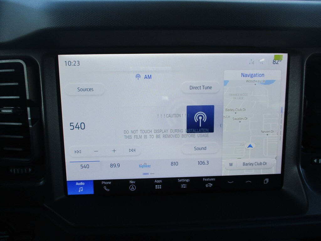 Delivers 21 Highway MPG and 20 City MPG! This Ford Bronco delivers a Intercooled Turbo Regular Unleaded I-4 2.3 L/140 engine powering this Automatic transmission. EQUIPMENT GROUP 222A MID PACKAGE -inc: Rear Parking Sensors, Power Outlet - Back Side of Center Floor Console, Dual Smart Charging USB Ports, Front Row Heated Seats, Dr & Pass Illuminated Sliding Visor Vanity Mirrors, Dual-Zone Electronic Automatic Temperature Control, air conditioning, Ford Co-Pilot360, Enables compatibility w/FordPass performance app w/off-road navigation, Auto High-Beam Headlamps, Pre-Collision Assist w/Automatic Emergency Braking, pedestrian detection, forward collision warning and dynamic brake support, Blind Spot Information System (BLIS), Cross-Traffic Alert, Rear View Camera, backup assist grid lines, Lane-Keeping System, Lane-Keeping Alert, Lane-Keeping Aid and Driver Alert, Connected Navigation, 1-year subscription, pinch-to-zoom capability, live traffic, predictive destinations and route guidance and One Box search, Navigation services require SYNC4 and FordPass Connect, complimentary connect service and the FordPass app (see FordPass terms for details), Cu, ENGINE: 2.3L ECOBOOST I-4 (STD), DOOR STORAGE BAGS -inc: Custom accessory, pre-installed, The door storage bags are unique to the number of doors, On-vehicle door storage is 4-door only.