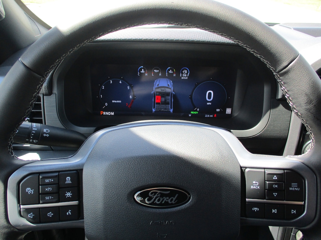 MOBILE OFFICE PACKAGE -inc: Partitioned Lockable Rear Storage, Console Worksurface, ENGINE: 3.5L POWERBOOST FULL-HYBRID V6 -inc: Pro Power Onboard 2.4KW and removes 36 gallon fuel tank, GVWR: 7,400 lbs Payload Package, Electronic Locking w/3.73 Axle Ratio , ELECTRONIC LOCKING W/3.73 AXLE RATIO, BLUECRUISE (EQUIPMENT + 1-YEAR PLAN) -inc: See ford.com/bluecruise for version details, Note: Select option to purchase BlueCruise hardware and 1 year of BlueCruise access at time of vehicle order, Without selecting this option, vehicle will never be capable of BlueCruise functionality, After this initial duration, customers need to purchase a subscription to continue using BlueCruise, See subscription options and pricing on ford.com/bluecruise, BLACK, UNIQUE SPORT CLOTH 40/CONSOLE/40 FRONT-SEATS -inc: power driver/manual passenger lumbar, flow-through console w/floor shift and two (2) USB charge only ports, Wheels: 18" Painted Aluminum, Variable Intermittent Wipers, Urethane Gear Shifter Material, Trip Computer, Transmission: Electronic 10-Speed Automatic -inc: SelectShift w/progressive range select and selectable drive modes: normal, ECO, sport, tow/haul, slippery, deep snow/sand and mud/rut.