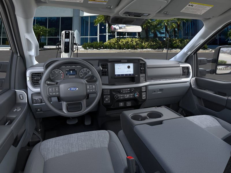 POWERSCOPE TRAILER TOW MIRRORS W/HEAT -inc: power-folding w/Autofold, telescoping, power glass, turn signal, high intensity LED security approach lamps and utility lighting system (LED side-mirror spotlights), OXFORD WHITE, ORDER CODE 613A, MEDIUM DARK SLATE, CLOTH 40/20/40 SPLIT BENCH SEAT -inc: 20% locking center under-seat storage, center armrest, cupholder, storage, 8-way power driver (includes power lumbar) and 2-way adjustable driver/passenger headrests, ENGINE: 7.3L 2V DEVCT NA PFI V8 GAS -inc: Electronic-Locking w/3.73 Axle Ratio, ELECTRONIC-LOCKING W/3.73 AXLE RATIO, DUAL AGM 68 AH BATTERY, DEFROST W/FIXED & PRIVACY GLASS, Wheels: 18" Sparkle Silver Painted Cast Aluminum, Variable Intermittent Wipers.