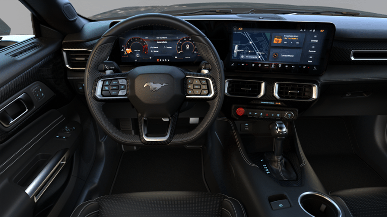 EQUIPMENT GROUP 401A HIGH PACKAGE -inc: Premier Trim w/Color Accent Group, accent stitched center console lid and shifter boot, 5-piece leather-wrapped steering wheel w/chrome bezel and unique color-accented door-trim, Instrument Panel w/Accent Stitch, Perimeter Alarm, 3.55 Limited Slip Rear Axle, Ford Co-Pilot360 Assist+, Driver-assist features are supplemental and do not replace the drivers attention, judgment, and need to control the vehicle, It does not replace safe driving, See Owners Manual for details and limitations, Pre-Collision Assist w/Automatic Emergency Braking, One-Year Connected Navigation, Lane-Keeping System w/Lane Keeping Aid, Lane Keeping Alert, Driver Alert, road departure warning and Blind Spot Assist, Magnesium Framed Panoramic Curved Display, Driver Seat Memory w/3 Settings, heated mirrors w/pony puddle lamps and integrated turn signals, Aluminum Foot Pedals, ANTI-THEFT PACKAGE -inc: Active Anti-Theft System, intrusion and inclination sensors, Locking Center Console, Wheel Locking Kit , MINI SPARE WHEEL & TIRE -inc: Replaces tire inflator and sealant kit (51B) when ordered w/military personnel sales (WAFAC), FORD CO-PILOT360 ASSIST+ -inc: Driver-assist features are supplemental and do not replace the drivers attention, judgment, and need to control the vehicle, It does not replace safe driving, See Owners Manual for details and limitations, Pre-Collision Assist w/Automatic Emergency Braking, One-Year Connected Navigation, Lane-Keeping System w/Lane Keeping Aid, Lane Keeping Alert, Driver Alert, road departure warning and Blind Spot Assist, ENGINE: 5.0L TI-VCT V8 -inc: stop/start system and Port Fueled Direct Injection (PFDI) (STD), BLACK ONYX, LEATHER-TRIMMED BUCKET SEATS W/COLOR ACCENTS, B&O SOUND SYSTEM BY BANG & OLUFSEN W/12 SPEAKERS -inc: subwoofer in trunk, ADRIATIC BLUE METALLIC, ACTIVE VALVE PERFORMANCE EXHAUST -inc: quad chrome tailpipe, 1ST ROW CARPETED BLACK FLOOR MATS.