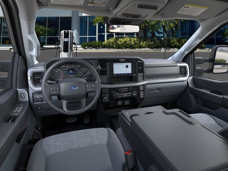 SPARE TIRE, WHEEL, CARRIER & JACK, ORDER CODE 603A, MEDIUM DARK SLATE, CLOTH 40/20/40 SPLIT BENCH SEAT -inc: 20% locking center under-seat storage, center armrest, cupholder, storage, 8-way power driver (includes power lumbar) and 2-way adjustable driver/passenger headrests, INTERIOR WORK SURFACE, FRONT LICENSE PLATE BRACKET -inc: Standard in states requiring 2 license plates and optional to all others, ENGINE: 6.7L 4V OHV POWER STROKE V8 TURBO DIESEL B20 -inc: manual push-button engine-exhaust braking and Operator Commanded Regeneration (OCR), 48 Gallon Fuel Tank, 3.31 Axle Ratio, Dual AGM 68 AH Battery, ELECTRONIC-LOCKING W/3.31 AXLE RATIO, DUAL AGM 68 AH BATTERY, AGATE BLACK METALLIC, Wireless Phone Connectivity.