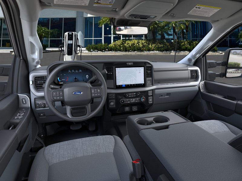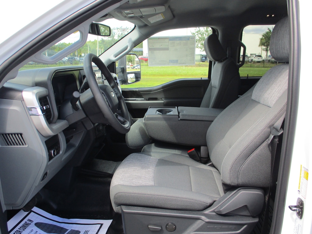 HIGH CAPACITY 11.6" AXLE UPGRADE PACKAGE -inc: increased GCW and upgraded 11.6" axle, Note: Salesperson's portfolio or trailer towing guide should be consulted for specific trailer towing or camper limits and corresponding required equipment, axle ratios and model availability, See supplemental reference for vehicle height consideration, F-250 >10K GVWR Package, 5TH WHEEL/GOOSENECK HITCH PREP PACKAGE -inc: 5 pickup bed attachment points w/plugs, 1 frame under-bed cross member and 1 integrated 7-pin connector on driver's side pickup bed wall, 5th wheel hitch compatibility: the 5th Wheel/Gooseneck Prep Package (53W) is compatible w/the factory orderable 5th Wheel Hitch Kits (15K and 15L) and dealer-installed Ford accessories 5th Wheel Hitch Kit by Reese - part #BC3Z-19D520-A (8ft box only), The prep package is also compatible w/Reese Signature Series 5th wheel hitch kits updated w/a new Leg Service Kit - part #BC3Z-A00A25-A (8ft box only), The 5th Wheel Hitch Kit (15K), 5th Wheel Hitch Kit (15L) and dealer-installed Ford accessories 5th Wheel Hitch Kit by Reese - part #BC3Z-19D520-A is not released to the short box (6.75ft box), NOTE: the short pickup box provides less clearance between the cab and 5th wheel trailer compared to long box pickups, The receiver centerline of the hitch should be mounted at least 2" forward from the rear-axle of the , OXFORD WHITE, ORDER CODE 603A, MEDIUM DARK SLATE, CLOTH 40/20/40 SPLIT BENCH SEAT -inc: 20% locking center under-seat storage, center armrest, cupholder, storage, 8-way power driver (includes power lumbar) and 2-way adjustable driver/passenger headrests, FRONT WHEEL WELL LINERS (PRE-INSTALLED), ELECTRONIC-LOCKING W/3.55 AXLE RATIO, DUAL AGM 68 AH BATTERY, CARPET DELETE -inc: Replaced w/black vinyl flooring, ALL-WEATHER FLOOR MATS -inc: Doesn't include carpet floor mats.