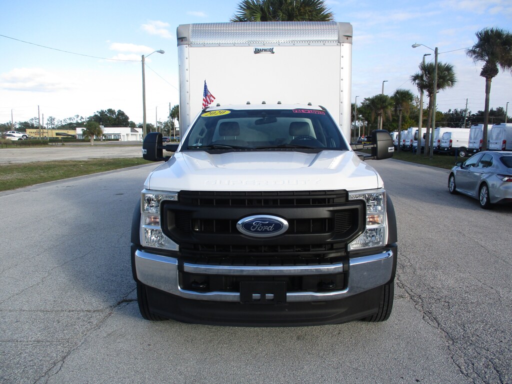 CARFAX One-Owner. This 2020 Ford F-550SD XL in Oxford White features: 16FT BOX TRUCK W/LIFT, 110V/400W Outlet, 332 Amp Alternators, 4 Speakers, 4-Wheel Disc Brakes, ABS brakes, Advanced Security Pack, Air Conditioning, AM/FM radio, AM/FM Stereo w/MP3 Player, Brake assist, Chrome Front Bumper, Compass, Delay-off headlights, Dual front impact airbags, Dual front side impact airbags, Dual rear wheels, Emergency communication system: SYNC 911 Assist, Folding Trailer Tow Mirrors w/Power Heated Glass, Front anti-roll bar, Front Center Armrest w/Storage, Front reading lights, Fully automatic headlights, GVWR: 18,000 lbs Payload Package, GVWR: 19,500 lb Payload Plus Upgrade Package, HD Vinyl 40/20/40 Split Bench Seat, MyKey, Order Code 660A, Outside temperature display, Overhead airbag, Passenger cancellable airbag, Passenger vanity mirror, Power Equipment Group, Power Front Side Windows, Power Locks, Power steering, Pre-Collision Assist, Rear anti-roll bar, Rear View Camera & Prep Kit, Remote Keyless Entry, Steering wheel mounted audio controls, Steering Wheel-Mounted Cruise Control, SYNC Communications & Entertainment System, Tachometer, Telescoping steering wheel, Tilt steering wheel, Traction control, Trailer Brake Controller, Transmission Power Take-Off Provision, Trip computer, Variably intermittent wipers, Wheels: 19.5" x 6" Argent Painted Steel, XL Value Package.