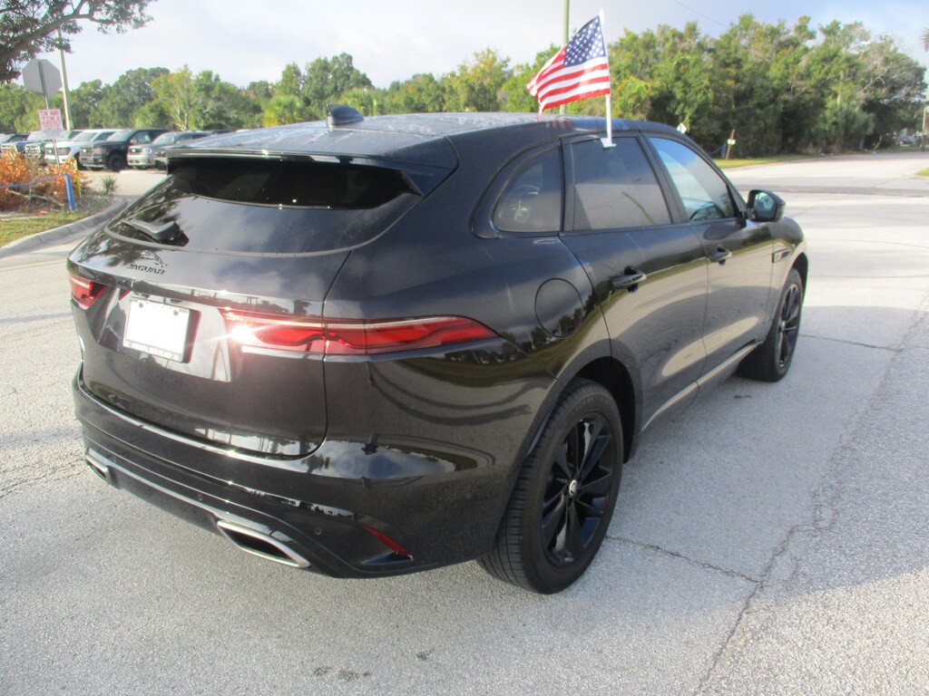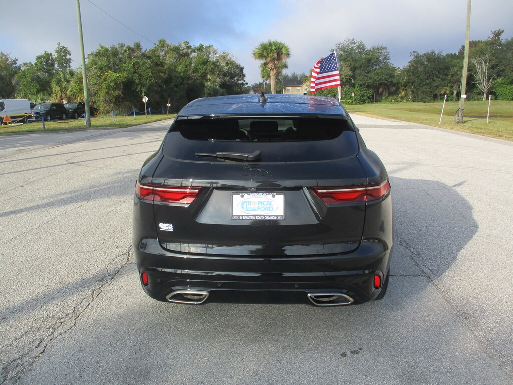 CARFAX One-Owner. This 2024 Jaguar F-PACE P400 R-Dynamic S in Black features: 11 Speakers, 3.73 Axle Ratio, 4-Wheel Disc Brakes, ABS brakes, Adaptive suspension, Air Conditioning, Alloy wheels, AM/FM radio: SiriusXM, Apple CarPlay/Android Auto, Auto High-beam Headlights, Auto tilt-away steering wheel, Auto-dimming door mirrors, Auto-dimming Rear-View mirror, Automatic temperature control, Brake assist, Bumpers: body-color, Compass, Delay-off headlights, Driver door bin, Driver vanity mirror, Dual front impact airbags, Dual front side impact airbags, Electronic Stability Control, Emergency communication system: Remote SOS Emergency Call, Exterior Parking Camera Rear, Four wheel independent suspension, Front anti-roll bar, Front Bucket Seats, Front Center Armrest, Front dual zone A/C, Front reading lights, Fully automatic headlights, Garage door transmitter: HomeLink, Heated door mirrors, Heated front seats, Heated Front Sport Bucket Seats, Heated steering wheel, Illuminated entry, Leather Shift Knob, Leather steering wheel, Low tire pressure warning, Memory seat, Navigation system: Pivi Pro (Connected Navigation), Occupant sensing airbag, Outside temperature display, Overhead airbag, Overhead console, Panic alarm, Passenger door bin, Passenger vanity mirror, Perforated DuoLeather Seat Trim, Power door mirrors, Power driver seat, Power Liftgate, Power moonroof, Power passenger seat, Power steering, Power windows, Radio data system, Radio: Meridian 400W Sound System, Rain sensing wipers, Rear anti-roll bar, Rear fog lights, Rear reading lights, Rear seat center armrest, Rear window defroster, Rear window wiper, Remote keyless entry, Security system, Speed control, Speed-sensing steering, Split folding rear seat, Spoiler, Sport steering wheel, Steering wheel memory, Steering wheel mounted audio controls, Tachometer, Telescoping steering wheel, Tilt steering wheel, Traction control, Trip computer, Turn signal indicator mirrors, Variably intermittent wipers, Wheels: 19" Diamond Turned (Style 5103).