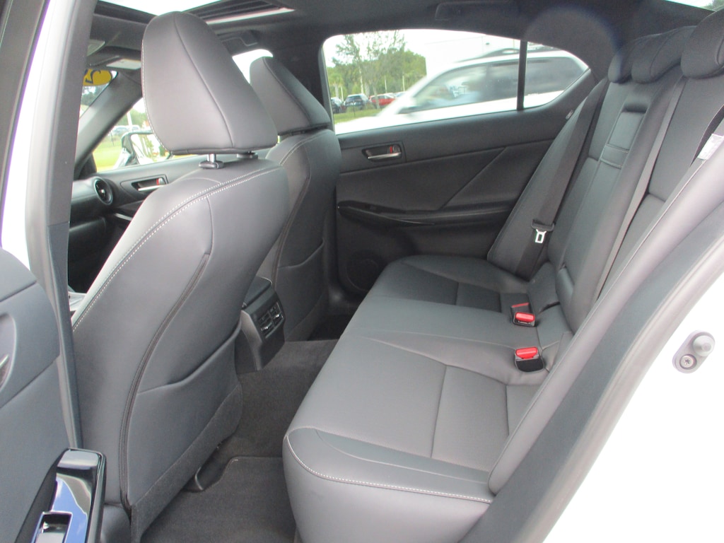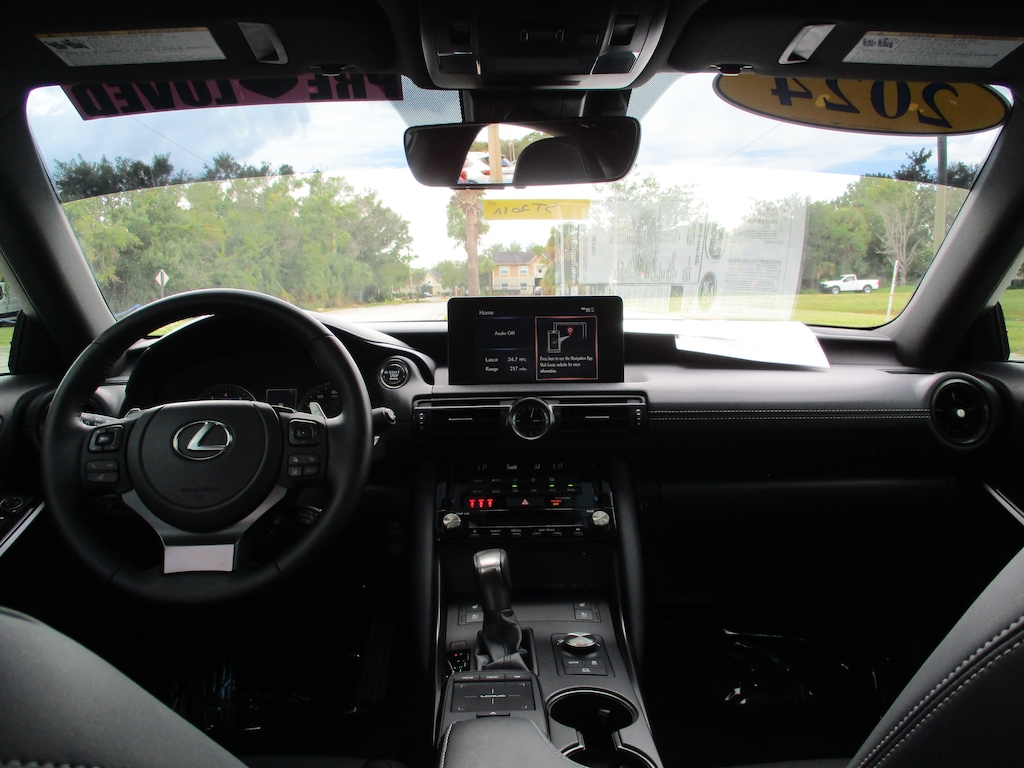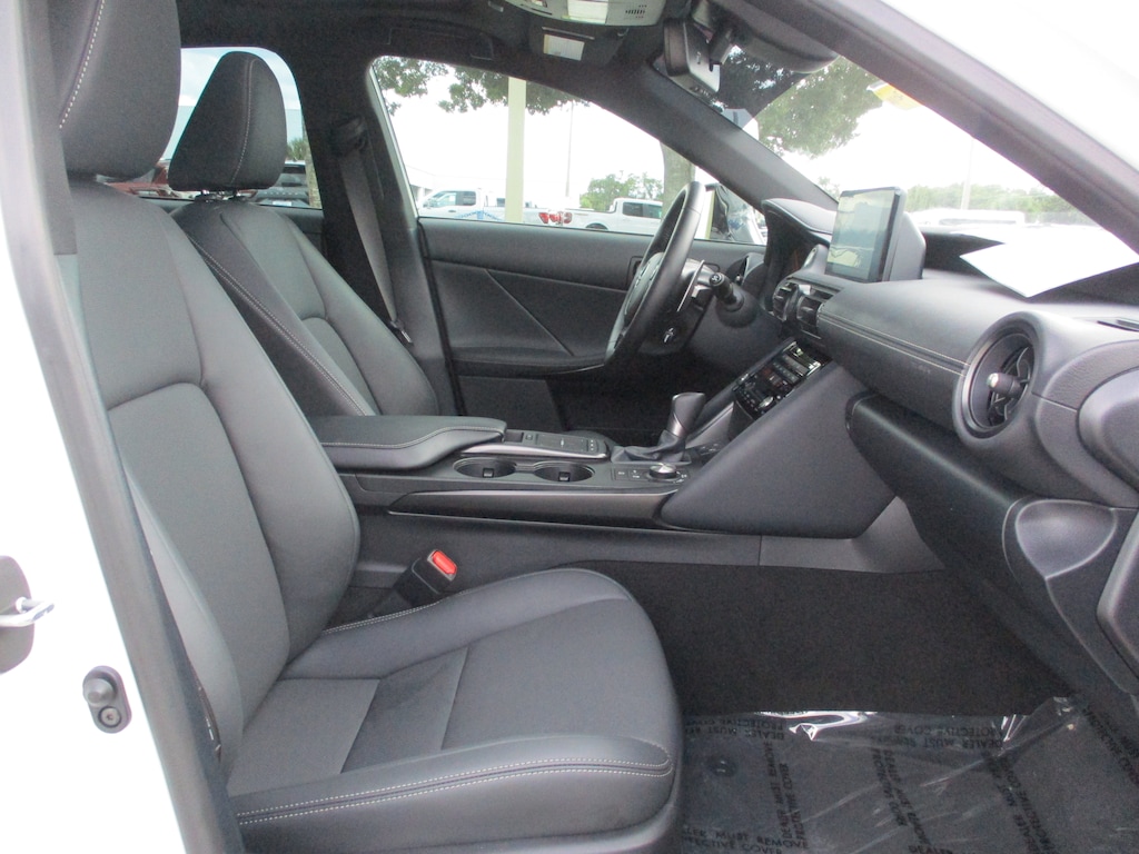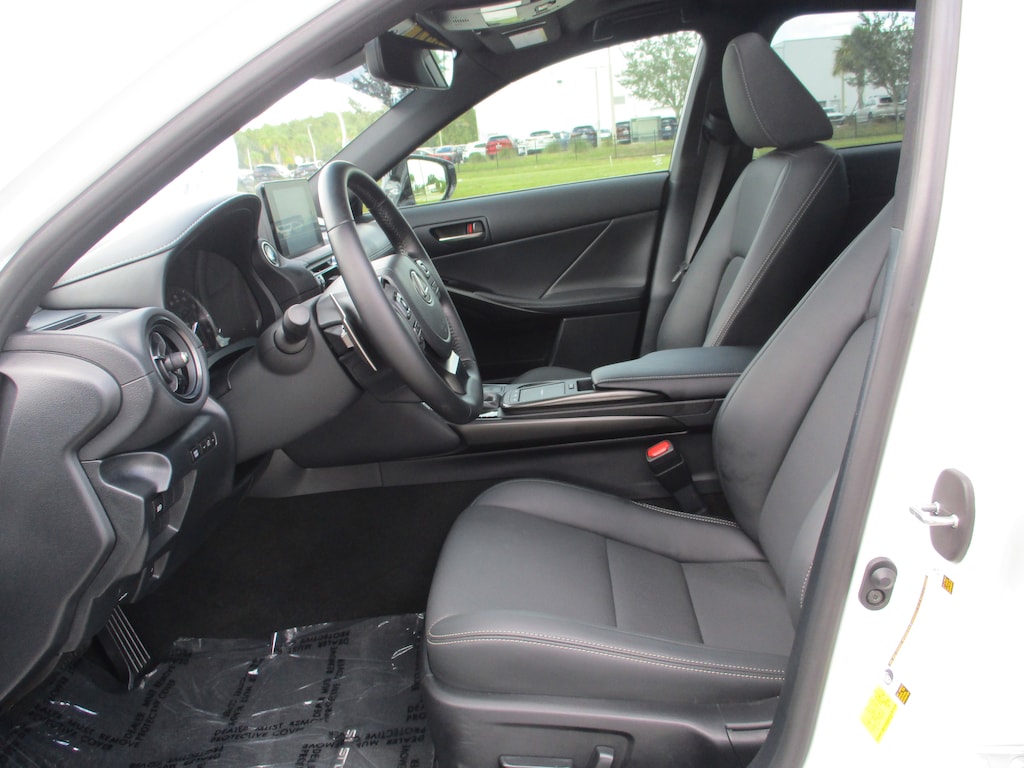 CARFAX One-Owner. This 2024 Lexus IS 300 in White Pearl features: Black Artificial Leather, 10 Speakers, 4-Wheel Disc Brakes, ABS brakes, Accessory Package 2, Air Conditioning, Alloy wheels, AM/FM radio: SiriusXM, Apple CarPlay/Android Auto, Auto High-beam Headlights, Auto-dimming door mirrors, Auto-Dimming Rearview Mirror w/HomeLink System, Automatic temperature control, Brake assist, Bumpers: body-color, Cargo Net, Carpet Trunk Mat, CD player, Comfort Package, Compass, Delay-off headlights, Driver door bin, Driver vanity mirror, Dual front impact airbags, Dual front side impact airbags, Electronic Stability Control, Emergency communication system: Safety Connect (3-year trial), Exterior Parking Camera Rear, Four wheel independent suspension, Front anti-roll bar, Front Bucket Seats, Front Center Armrest, Front dual zone A/C, Front fog lights, Front reading lights, Fully automatic headlights, Heated & Ventilated Front Seats, Heated door mirrors, Heated Leather Trim Steering Wheel, Illuminated entry, Intuitive Park Assist w/RCTB, Key Gloves, Knee airbag, Leather Shift Knob, Leather steering wheel, Low tire pressure warning, Occupant sensing airbag, Outside temperature display, Overhead airbag, Overhead console, Panic alarm, Passenger door bin, Passenger vanity mirror, Perforated NuLuxe Seat Trim, Power door mirrors, Power driver seat, Power passenger seat, Power Seats, Power steering, Power Tilt & Slide Moonroof, Power windows, Radio data system, Radio: Multimedia System w/8" Color Touchscreen, Rain-Sensing Intermittent Windshield Wipers, Rear anti-roll bar, Rear Bumper Applique, Rear reading lights, Rear side impact airbag, Rear window defroster, Remote keyless entry, Security system, Speed control, Speed-sensing steering, Speed-Sensitive Wipers, Split folding rear seat, Steering wheel mounted audio controls, Tachometer, Telescoping steering wheel, Tilt steering wheel, Traction control, Trip computer, Turn signal indicator mirrors, Variably intermittent wipers, Wheel Bolt Locks, Wheels: 18" x 8.5J.
