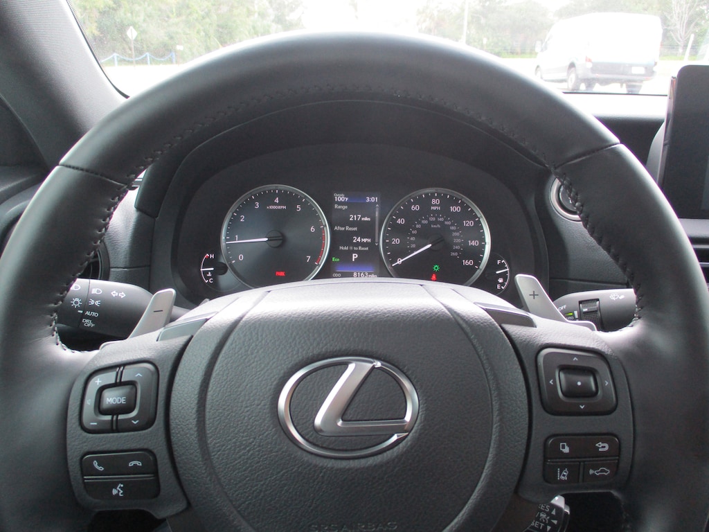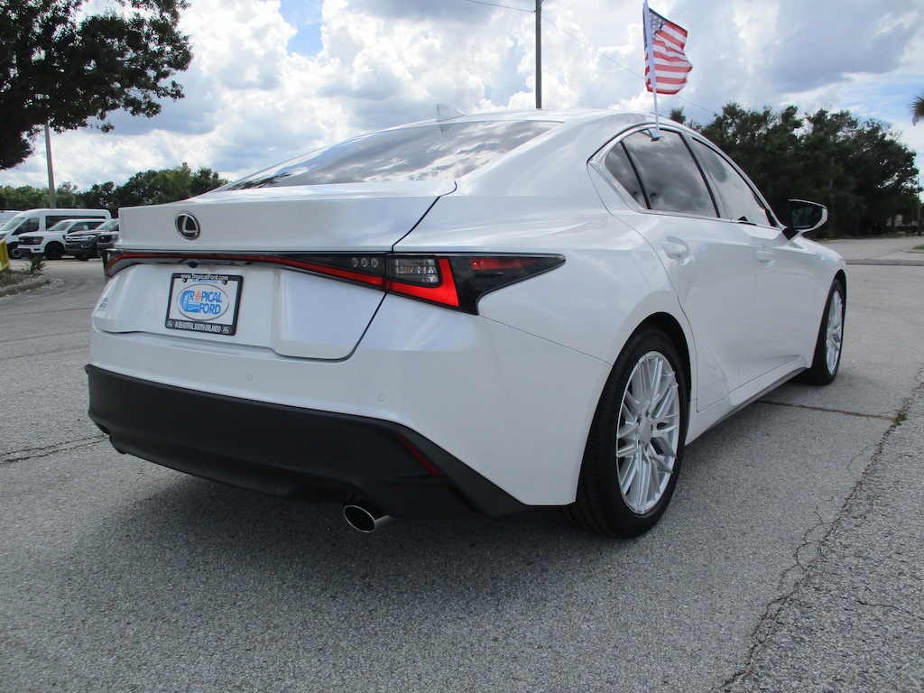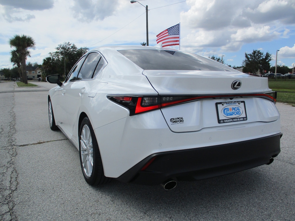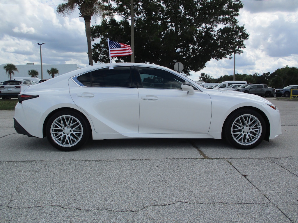 CARFAX One-Owner. This 2024 Lexus IS 300 in White Pearl features: Black Artificial Leather, 10 Speakers, 4-Wheel Disc Brakes, ABS brakes, Accessory Package 2, Air Conditioning, Alloy wheels, AM/FM radio: SiriusXM, Apple CarPlay/Android Auto, Auto High-beam Headlights, Auto-dimming door mirrors, Auto-Dimming Rearview Mirror w/HomeLink System, Automatic temperature control, Brake assist, Bumpers: body-color, Cargo Net, Carpet Trunk Mat, CD player, Comfort Package, Compass, Delay-off headlights, Driver door bin, Driver vanity mirror, Dual front impact airbags, Dual front side impact airbags, Electronic Stability Control, Emergency communication system: Safety Connect (3-year trial), Exterior Parking Camera Rear, Four wheel independent suspension, Front anti-roll bar, Front Bucket Seats, Front Center Armrest, Front dual zone A/C, Front fog lights, Front reading lights, Fully automatic headlights, Heated & Ventilated Front Seats, Heated door mirrors, Heated Leather Trim Steering Wheel, Illuminated entry, Intuitive Park Assist w/RCTB, Key Gloves, Knee airbag, Leather Shift Knob, Leather steering wheel, Low tire pressure warning, Occupant sensing airbag, Outside temperature display, Overhead airbag, Overhead console, Panic alarm, Passenger door bin, Passenger vanity mirror, Perforated NuLuxe Seat Trim, Power door mirrors, Power driver seat, Power passenger seat, Power Seats, Power steering, Power Tilt & Slide Moonroof, Power windows, Radio data system, Radio: Multimedia System w/8" Color Touchscreen, Rain-Sensing Intermittent Windshield Wipers, Rear anti-roll bar, Rear Bumper Applique, Rear reading lights, Rear side impact airbag, Rear window defroster, Remote keyless entry, Security system, Speed control, Speed-sensing steering, Speed-Sensitive Wipers, Split folding rear seat, Steering wheel mounted audio controls, Tachometer, Telescoping steering wheel, Tilt steering wheel, Traction control, Trip computer, Turn signal indicator mirrors, Variably intermittent wipers, Wheel Bolt Locks, Wheels: 18" x 8.5J.