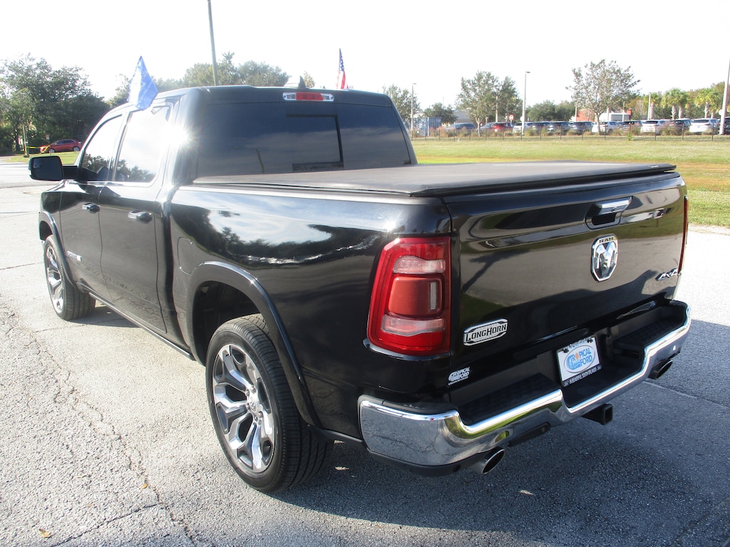This 2019 Ram 1500 Laramie Longhorn in Diamond Black Crystal Pearlcoat features: #1 Seat Foam Cushion, 1-Yr SiriusXM Guardian Trial, 10 Speakers, 12" Touchscreen Display, 3 Rear Seat Head Restraints, 4 Adjustable Cargo Tie-Down Hooks, 4 Way Front Headrests, 4-Corner Air Suspension, 4-Wheel Disc Brakes, 48V Belt Starter Generator, ABS brakes, Adaptive Cruise Control w/Stop & Go, Adjustable pedals, Advanced Brake Assist, Advanced Safety Group, Air Conditioning, Alloy wheels, AM/FM radio: SiriusXM, Apple CarPlay, Apple CarPlay/Android Auto, Audio memory, Auto High-beam Headlights, Auto-dimming door mirrors, Auto-dimming Rear-View mirror, Automatic temperature control, Bed Utility Group, Blind Spot & Cross Path Detection, Brake assist, Bucket Seats, Bumpers: chrome, Compass, Delay-off headlights, Disassociated Touchscreen Display, Dome Dual LED Reading Lamp, Driver door bin, Driver Seat Memory, Driver vanity mirror, Dual front impact airbags, Dual front side impact airbags, Dual-Pane Panoramic Sunroof, E-Locker Rear Axle, Electronic Stability Control, Emergency communication system: SiriusXM Guardian, Foam Bottle Insert (Door Trim Panel), Front anti-roll bar, Front Bucket Seats, Front Center Armrest w/Storage, Front dual zone A/C, Front fog lights, Front reading lights, Front Seat Back Map Pockets, Front wheel independent suspension, Full Speed Forward Collision Warning Plus, Fully automatic headlights, Garage door transmitter, Genuine wood console insert, Genuine wood dashboard insert, Genuine wood door panel insert, Google Android Auto, GPS Antenna Input, GPS Navigation, harman/kardon 19 Speaker Premium Sound, HD Radio, Heated door mirrors, Heated Front Seats, Heated front seats, Heated rear seats, Heated Second Row Seats, Heated Steering Wheel, Heated steering wheel, Illuminated entry, Integrated Center Stack Radio, Lane Keep Assist, Leather steering wheel, LED Dome/Reading Lamp, Longhorn Level 1 Equipment Group, Low tire pressure warning, Memory seat, Navigation System, No Satellite Coverage w/HI/AK/PR/VI/GU, Occupant sensing airbag, Outside temperature display, Overhead airbag, Overhead console, Panic alarm, Parallel & Perp Park Assist w/Stop, ParkView Rear Back-Up Camera, Passenger door bin, Passenger vanity mirror, Pedal memory, Pick-Up Box Lighting, Power 4-Way Driver Lumbar Adjust, Power 4-Way Passenger Lumbar Adjust, Power 8-Way Driver & Passenger Seats, Power door mirrors, Power driver seat, Power passenger seat, Power Running Boards, Power steering, Power windows, Premium Leather Seats w/Filigree, Quick Order Package 27K Longhorn, Radio data system, Radio: Uconnect 12 w/Navigation, Radio: Uconnect 4C Nav w/8.4" Display, Rain sensing wipers, Rear 60/40 Folding Split Recline Seat, Rear anti-roll bar, Rear seat center armrest, Rear step bumper, Rear window defroster, Remote CD player, Remote keyless entry, Security system, SiriusXM Satellite Radio, SiriusXM Traffic Plus, SiriusXM Travel Link, SiriusXM w/360L, Speed control, Split folding rear seat, Steering wheel mounted audio controls, Tachometer, Telescoping steering wheel, Tilt steering wheel, Traction control, Trailer Brake Control, Tri-Fold Tonneau Cover, Trip computer, Turn signal indicator mirrors, USB Host Flip, Variably intermittent wipers, Ventilated Front Seats, Ventilated front seats, Ventilated Rear Seats, Voltmeter, Wireless Charging Pad.