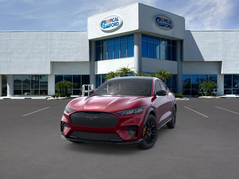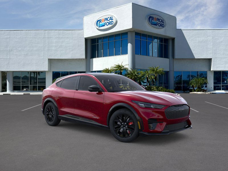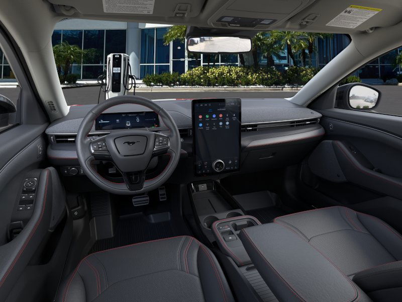 This Ford Mustang Mach-E delivers a Electric engine powering this Automatic transmission. TIRE INFLATOR & SEALANT KIT -inc: Standard in states when required and optional to all others, Located under load floor, SPORT APPEARANCE PACKAGE -inc: unique red accent stitching on seats, IP, door trim, steering wheel and center console lid and black painted front/rear door cladding, front/rear wheellip moldings and rear lower fascia, Wheels: 19" Monochromatic High Gloss Black-Painted, Brembo Branded Front Brakes, Red Painted Front & Rear Brake Calipers, Sport Pedals, Unique Front Fascia, body-color upper, black-painted lower and grille shield in gloss black, PANORAMIC FIXED-GLASS ROOF -inc: infrared reflective (IRR) windshield.