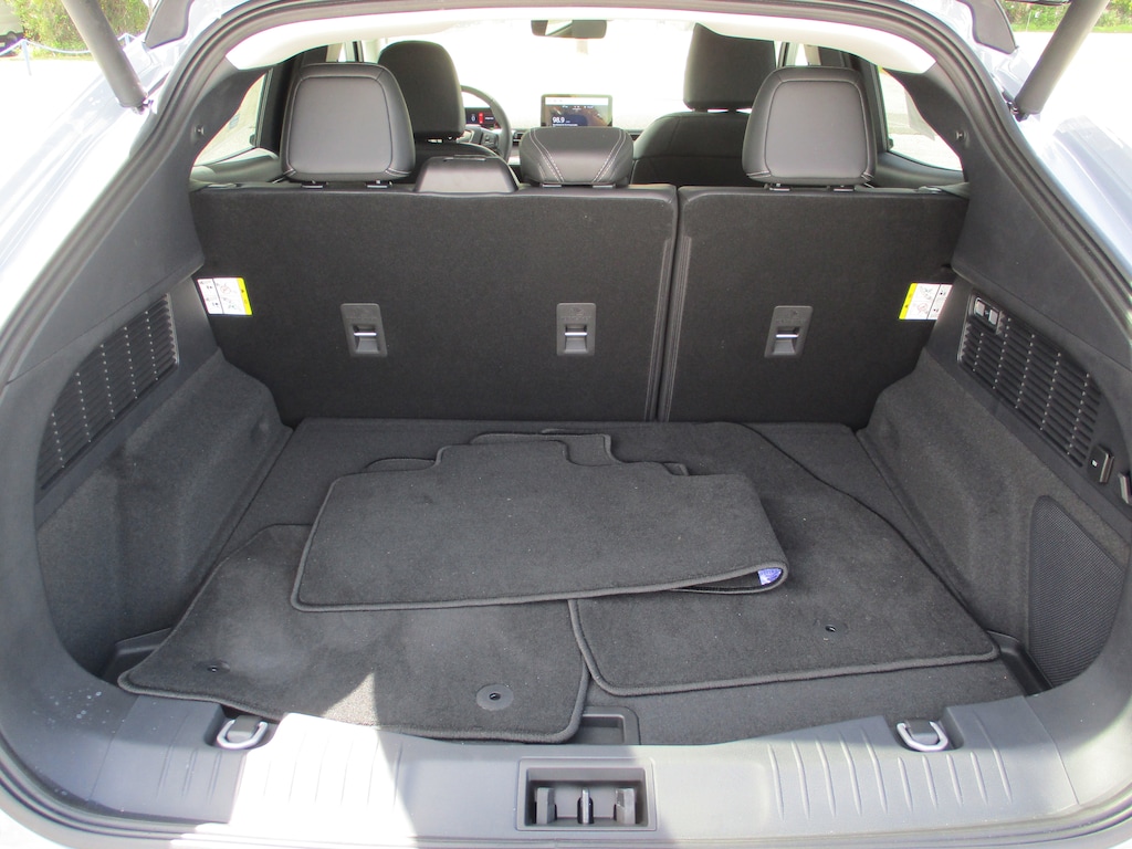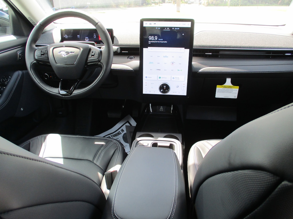 This Ford Mustang Mach-E boasts a Electric engine powering this Automatic transmission. TIRE INFLATOR & SEALANT KIT -inc: Standard in states when required and optional to all others, Located under load floor, PANORAMIC FIXED-GLASS ROOF -inc: infrared reflective (IRR) windshield, MOBILE POWER CORD (120V/240V) -inc: switchable cord end to allow customer charge functionality w/120V (NEMA 5-15) or 240V (NEMA 14-50).